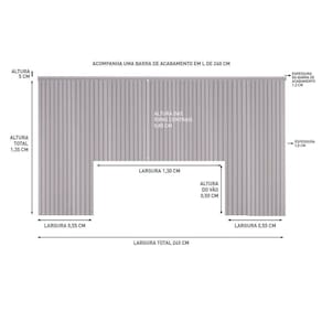 Acompanha uma barra de acabamento em L de 240cm, para fixação na extremidade superior da cabeceira.