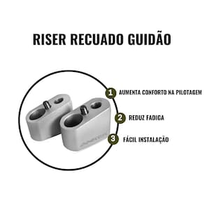 O riser ajusta a altura do guidão, o que reduz a fadiga nos braços, ombros e costas, permitindo uma pilotagem mais confortável por longos períodos.