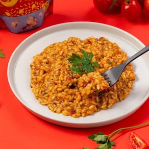 Você vai receber: 1 unidade de Risoto de Tomate MEXIDONA 180g, que rende 3 porções deliciosas e saudáveis.