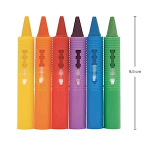 O Risque e Apague Com Esponja da Buba possui 6 gizes de cera coloridos.