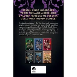 Segredos, alianças e traições. Restam cinco jogadores. Quem sairá vitorioso do Grande Jogo? Prepare-se para a sequência eletrizante de O Grande Jogo e sétimo livro da série Jogos de Herança, onde cada movimento pode ser decisivo Nos jogos que mais importam, a única maneira de participar de verdade é vivendo. Sete jogadores foram levados à Ilha Hawthorne para disputar o Grande Jogo, a competição organizada pela bilionária Avery Grambs e os quatro irmãos Hawthorne. Dos sete, apenas cinco participantes continuam na disputa — e a cada rodada, os desafios ficam mais perigosos, os segredos, mais sombrios e as alianças, mais frágeis. Para vencer, os competidores precisam decifrar enigmas, enfrentar provas cheias de reviravoltas e, acima de tudo, aprender em quem podem — ou não — confiar. Mas há um problema: todos escondem alguma coisa. Todos têm algo a perder. E alguém, escondido nas sombras, observa cada movimento. Entre amores avassaladores e rivalidades intensas, os jogadores descobrem que o prêmio não é a única coisa em jogo. Quando influências externas ameaçam a disputa e a vida de quem mais amam, os participantes e os organizadores percebem que, para chegar até o fim, terão de estar preparados para a jogada mais perigosa de todas. Rivais gloriosos é a sequência direta de O Grande Jogo e o sétimo livro na ordem de leitura da série Jogos de Herança, antecedido por Jogos de herança, O herdeiro perdido, A aposta final, Os irmãos Hawthorne, O Grande Jogo e Jogos ocultos.