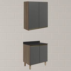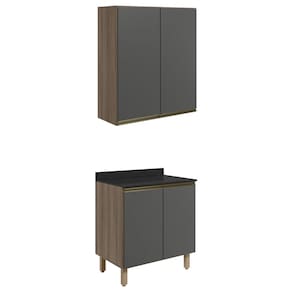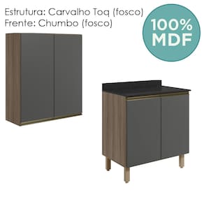 Conjunto de Armário Aéreo e Balcão com Tampo para cozinha, funcional e moderno, ideal para composições que otimizam o espaço com elegância. Fabricado 100% em MDF, com estrutura e tampo de 15mm e forro de fundo de 3mm, o conjunto é composto por 1 armário aéreo com 2 portas com dobradiças de 35mm com amortecedores, que garantem fechamento suave e silencioso, além de puxadores em perfil de alumínio e 1 prateleira interna, e 1 balcão com tampo que conta com 2 portas, 1 prateleira interna, puxadores em perfil de alumínio e 4 pés com altura de 15,5cm e regulagem adicional de 1,5cm, assegurando estabilidade em diferentes tipos de piso. Estes móveis chegarão em sua casa separados em 05 volumes.
