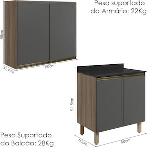 Peso Suportado do Balcão: 28Kg (20Kg tampo, 08Kg prateleira)