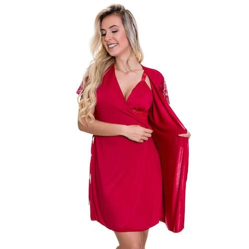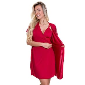 Robe em Microfibra e manga curta de renda, super confortável e com ótimo caimento.