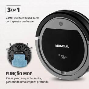 Aspira, varre e passa pano simultaneamente. Design super slim para alcançar locais de difícil acesso. Sensores antiqueda e proteção emborrachada. Coletor de pó removível e lavável. Autonomia de até 90 minutos.Tipo de coletor