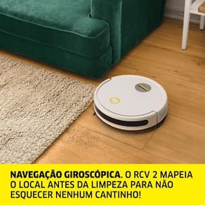 Ideal para a limpeza de pisos frios, carpetes e tapetes. O RCV 2 retorna para a base automaticamente e possui múltiplos modos de limpeza, que podem ser acionados de acordo com a necessidade. O sensor anti-queda impede que o robô aspirador caia de escadas e andares superiores. A navegação gyro permite uma limpeza mais eficiente, evitando que o robô passe duas vezes no mesmo lugar.