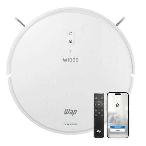 O Robô Aspirador WAP Robot W1000 é um dispositivo versátil, que varre, aspira e passa pano, proporcionando uma limpeza eficiente e contínua em todos os cômodos. Equipado com mapeamento inteligente através da tecnologia Gyro, calcula sua posição em tempo real, evitando obstáculos e promovendo uma movimentação segura. Pode ser controlado via aplicativo WAP CONNECT, comandos de voz, tornando a limpeza ainda mais prática.