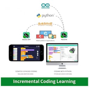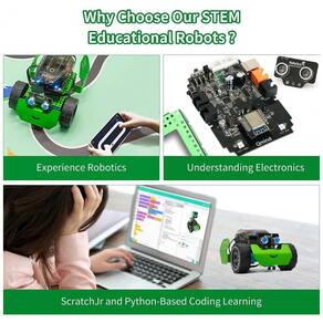 Robótica educacional do STEM o Q scout ajuda as crianças a aprender a programação passo a passo, levando os de uma programação simples e divertida de arrastar e soltar com gráficos Scratch para uma programação avançada com Arduino e Python. Ele permite que as crianças aprendam codificação, eletrônica e robótica através da construção e reprodução, melhorando seu pensamento lógico, habilidades práticas, criatividade e outras habilidades.