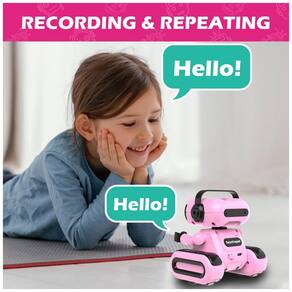 O brinquedo conta com função de gravação, permitindo registrar mensagens de voz de até 15 segundos, que podem ser reproduzidas em modo de repetição. Os comandos do controle remoto acionam modos de deslocamento, giro, variações de olhos em LED e seleção de músicas, mantendo o uso simples para o público infantil. A estrutura foi projetada para uso em pisos internos, como superfícies lisas e carpetes baixos.