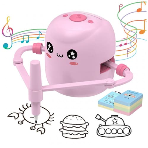 O kit de robô de desenho ERYMCS inclui 1 robô de desenho, 150 cartões de desenho, 4 canetas de desenho, 12 canetas coloridas, 1 cabo de carregamento, 1 quadro de desenho, 1 manual de instruções. Nosso robô de desenho é projetado para crianças de 5 a 10 anos. Seu design fofo e funções adequadas para crianças o tornam um complemento perfeito para qualquer brinquedo, combinando entretenimento e aprendizado em um só lugar. O robô de desenho pode estimular o potencial das crianças, visando cultivar habilidades como coordenação olho-mão, percepção de cores, pintura e alfabetização. Inicie a diversão facilmente, sem a necessidade de aplicativos. Basta inserir os 150 cartões de desenho incluídos, pressionar o botão e o robô começará a pintar. As crianças podem aprender palavras e pintura com o robô de desenho. Os cartões de desenho incluem diferentes categorias, como animais, plantas, transporte, alimentos, etc. O robô de pintura interativo é feito de materiais de alta qualidade e seguros para crianças, com a segurança infantil como objetivo. O design bonito e seguro garante que as crianças possam aprender a desenhar felizmente em um ambiente seguro. Um presente criativo para meninas e meninos, nosso robô de desenho é perfeito para crianças a partir de 4 anos e é ótimo para desenvolver habilidades de desenho, linguagem e aprendizado precoce. É um presente ideal para o Dia das Crianças, aniversário e Natal.