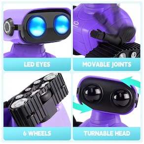 O robô emocional programável da marca?Playsheek, em acabamento roxo vibrante, foi concebido para encantar crianças a partir de 3?anos com interação simples, divertida e tecnológica. Ele se destaca pelos olhos equipados com luzes LED ajustáveis — que podem piscar, permanecer acesas ou se desligar — e por sua capacidade de cantar e dançar ao toque de um botão.