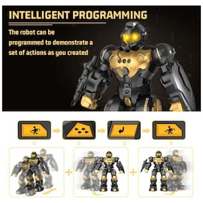 Versão atualizada Mais legal do que você imagina e mais resistente do que parece, este brinquedo robô tem os mais recentes estilos de formas e funções com um controle remoto de 2,4 GHz. Segurando s e escudos de proteção, ele está pronto para ser um fiel companheiro das crianças. Controle Remoto e Sensor de Gestos Este robô com sensor de gestos pode não apenas ser controlado pelo controle remoto, mas também pode avançar, retroceder, esquerda e direita de acordo com seus comandos de gestos. Programação Intelectual O brinquedo robô pode ser programado através do controle remoto para demonstrar um conjunto de ações criadas pela criança, como Vire à esquerda Vire à direita Deslize para frente Recuo, o que permite que a imaginação da criança corra solta enquanto lhes traz diversão ilimitada. Robô Inteligente Recarregável Este robô RC se tornará o melhor parceiro para seus filhos com a função de cantar, dançar, contar histórias. 1 hora de reprodução após carregar por 60 minutos. Você pode carregá lo facilmente usando o cabo USB Marca: Não Informado