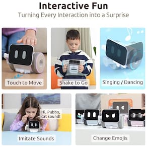 O WhalesBot Pubbo Air é um robô educativo interativo com tela digital, múltiplos sensores e conectividade por controle remoto, comandos de voz e aplicativo, desenvolvido para unir brincadeira, programação e exploração de tecnologia em um único brinquedo. Um simples toque desperta o robô, que responde com animações, emojis na tela, sons divertidos e movimentos, funcionando como um companheiro lúdico que estimula a curiosidade por robótica. Pelo aplicativo, as crianças podem criar sequências de movimentos, danças, expressões e efeitos sonoros usando blocos de código em estilo Scratch, além de acessar missões guiadas, desafios e tutoriais em formato de jogo.