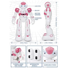 O robô de controle remoto é versátil e vibrante, capaz de dançar, cantar, andar, patrulhar e até falar com um sotaque encantador. É um presente incrível para as crianças, que as entreterá muito.