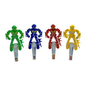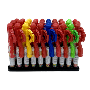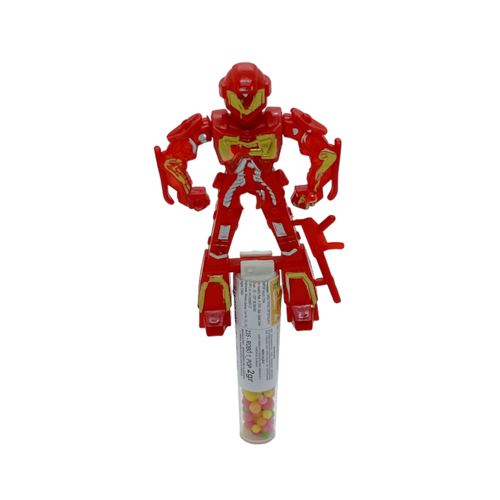 Apresentamos o Robo Pop I, o companheiro perfeito que combina tecnologia e sabor para proporcionar uma experiência única! Este robô futurista está conectado à parte superior de um tubo cheio de deliciosas balinhas sabor Tutti Frutti, oferecendo diversão e doçura em um único pacote.