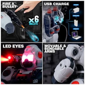 Design atualizado com função Spry e dispare uma bala Brinquedo robô incrível mais do que sua imaginação, nós o chamamos de Defender, este brinquedo robô inteligente tem o design e as funções mais recentes com função SPRAY e FIRE A BULLET, é uma coisa divertida, as crianças podem se divertir muito mais com seus níveis de idade, fácil de operar em seus favoritos, foi um companheiro muito legal e amigável. Diferentes ações programáveis desenvolvem habilidades Este brinquedo de robô de controle remoto suporta mais de 50 ações diferentes por programação, o robô RC pode fazer automaticamente ações e cantos diferentes. isso desenvolve muito a capacidade criativa, paciência, concentração e capacidade de senso lógico das crianças Controle remoto e controle de detecção de gestos para fácil operação Este brinquedo robô de controle remoto com tecnologia de controle remoto sem fio 2.4G, é uma conexão estável e forte, e desenvolvemos controle de detecção de gestos para o robô inteligente, o robô pode se mover para frente, para trás, vire à esquerda e vire à direita simplesmente como seus gestos. E este robô inteligente RC também está equipado com sensores de detecção de colisão que permitem evitar obstáculos à sua frente. Brinquedo Robô Interativo e Educacional O robô interativo é uma ferramenta ideal para ajudar a ensinar conhecimento sobre robótica, ciência, arte e tecnologia para jovens e, em seguida, desenvolver sua capacidade de criatividade. O Defender tem olhos de LED, articulações flexíveis de braços e pernas, para que a criançada possa fazer diversas poses bacanas como quiser. até mesmo dançando e cantando atraentes, simulam o desempenho humano e promovem a interação com as crianças Marca: Não Informado
