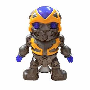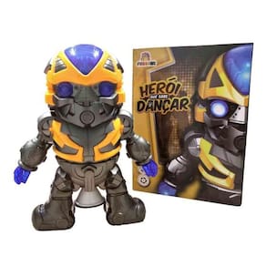 >Material: Metal e Plástico >Necessita 3 pilhas AA >Contém Luzes e som com musica >Dança e se mexe conforme a musica >Contém 1 boneco dançarino Bumblebee Herói que dança