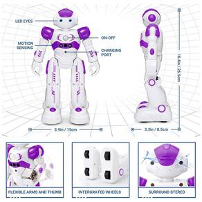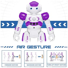 Controle Remoto e Controle por Gestos: Este robô com sensor de gestos pode ser controlado por controle remoto infravermelho ou por gestos da mão. Ele pode virar para a esquerda, para a direita, deslizar para trás e para a frente de acordo com os comandos de gestos. Possui funções como exibição automática e desvio de obstáculos. Os olhos do robô brilham com LEDs azuis quando em movimento. Programação Inteligente: Este robô inteligente pode executar até 50 ações programadas pelo usuário. Com a função de gravação de movimentos, ele pode repetir os movimentos um a um, como virar para a esquerda, virar para a direita, andar para frente, andar para trás, patrulhar, dançar, entre outros modos de ação. Material Premium: Feito de plástico ABS atóxico, o robô possui articulações flexíveis nos ombros, cotovelos e polegares, além de rodas de patinação resistentes na base. Recarregável e Prático: Com baterias recarregáveis embutidas, basta conectar o robô a uma interface de carregamento USB para recarregar em cerca de 2 horas, proporcionando aproximadamente 60 minutos de diversão. Presente Ideal: Este Robô de Controle Remoto é um presente versátil e animado, capaz de dançar, cantar, andar, patrulhar e até falar com um sotaque encantador. Surpreenda as crianças com este presente incrível que as entretém e diverte muito.