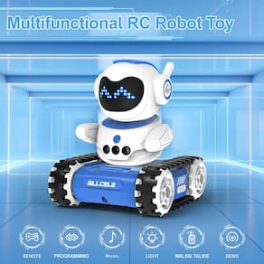 - Aparência fantástica: este robô fofo e engraçado é projetado em 2 partes. A parte superior é um robô fofo com luz de LED que pode ser alternada através do controle remoto e o gesto pode ser ajustado. A parte inferior é um par de pneus para trilhos de tanque. Além disso, adotamos uma combinação de cores exclusiva neste robô. Será um ótimo presente de aniversário ou Natal para seus filhos.