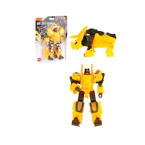 Design 2 em 1: O brinquedo pode ser transformado de um robô em um touro e vice-versa. Cor: O esquema de cores é amarelo e preto.