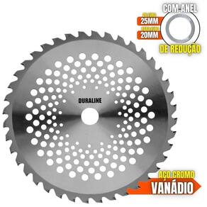 O DISCO DE CORTE Vídea acompanha um anel de redução, ou seja, pode ser utiizada para roçadeiras de furo 20mm ou 25mm além de possui pintura feita por Cataforese a qual é mais resistente à corrosão. Seus dentes de vídea soldados à laser possuem encaixe especial, garantindo mais segurança, desempenho e durabilidade, as lâminas são balanceadas com menor vibração, corte contínuo e suave, com mais conforto ao operador e mais longevidade para a roçadeira. Possui maior rendimento no trabalho e não precisa ser afiada antes do uso, uma vez que possuem ponta 4 lados de polimero, solda de ponta tipo U. Ideal para terrenos com cascalhos e pequenos galhos para serrar.