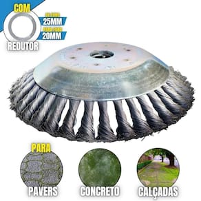 A Escova rotativa da Duraline acompanha um anel de redução, ou seja, pode ser utilizada para roçadeiras de furo 20mm ou 25mm, tendo as cerdas feitas em aço garante mais segurança, desempenho e durabilidade. A Escova Rotativa Duraline é balanceada, fazendo com que haja menor vibração, corte contínuo e suave, com mais conforto ao operador e mais longevidade para a roçadeira. A escova é do modelo côncavo, assim facilitando o seu uso durante o manuseio. A Escova pode ser aplicada para diferentes trabalhos, dentre elas: Limpeza de Pavers, Limpeza de Calçadas, Limpeza de concreto, Limpeza de Pavimentos, Remoção de musgos e Remoção de ervas daninhas