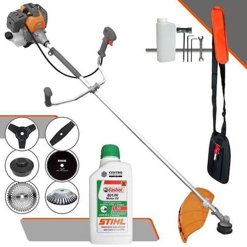 ATENÇÃO: A ROÇADEIRA É DA MARCA TEKNA E ACOMPANHA UM ÓLEO 2T DA MARCA CASTROL STIHL