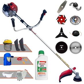 Roçadeira Profissional À Gasolina Kawashima BCJ 521L 52CC 2,5HP 2T + Faca 3 Pontas + Faca 40 Dentes + Faca 80 Dentes + Escova Rotativa 24 cerdas + Trimmer + Faca 6 Pontas + Óleo Castrol Stihl 2T 500ml + Kit EPI Completo