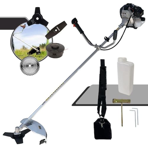Com guidão ergonômico lateral, permite um alcance amplo e maior mobilidade, capaz de aumentar a produtividade diária. Possui motor 2 tempos á gasolina, de 42,7 Cilindradas, 12.000 de rotação 1,7HP de potência que proporcionam maior performance e economia na operação. Seu conjunto de acessórios inclui kit de ferramentas, cinto de suporte almofadado, carretel de nylon e lâmina de corte 3 pontas.