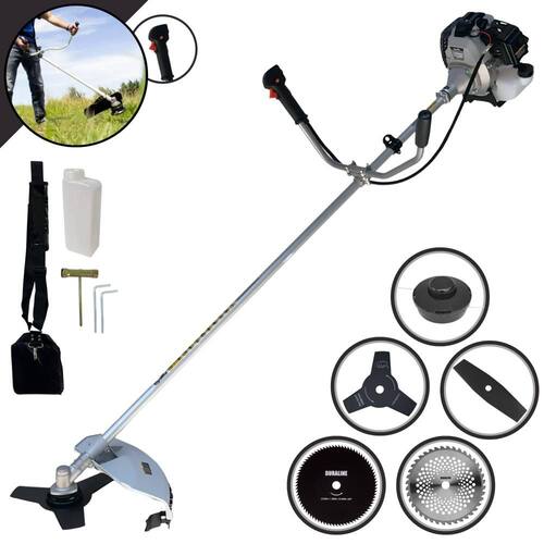 Com guidão ergonômico lateral, permite um alcance amplo e maior mobilidade, capaz de aumentar a produtividade diária. Possui motor 2 tempos á gasolina, de 42,7 Cilindradas, 12.000 de rotação 1,7HP de potência que proporcionam maior performance e economia na operação.Seu conjunto de acessórios inclui kit de ferramentas, cinto de suporte almofadado, carretel de nylon e lâmina de corte 3 pontas.