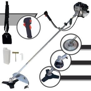 Com guidão ergonômico lateral, permite um alcance amplo e maior mobilidade, capaz de aumentar a produtividade diária. Possui motor 2 tempos á gasolina, de 42,7 Cilindradas, 12.000 de rotação 1,7HP de potência que proporcionam maior performance e economia na operação. Seu conjunto de acessórios inclui kit de ferramentas, cinto de suporte almofadado, carretel de nylon e lâmina de corte 3 pontas.
