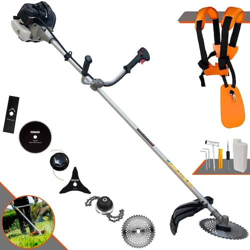 Roçadeira Lateral ANMAX CG430B À Gasolina 2 Tempos 43cc 1,7HP + Faca 3 Pontas 255m + Faca 40 Dentes 255mm + Faca 80 Dentes 255mm + Trimmer