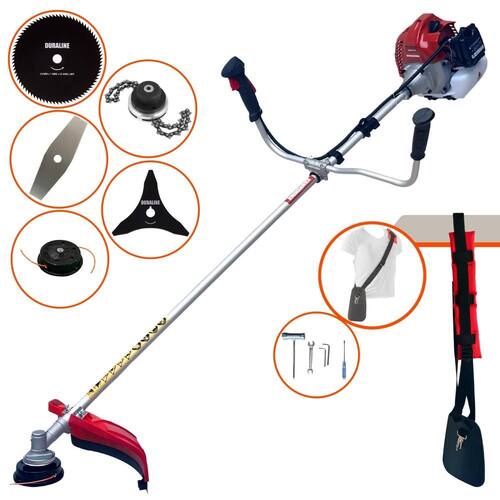 Com guidão ergonômico lateral, permite um alcance amplo e maior mobilidade, capaz de aumentar a produtividade diária. Possui motor 2 tempos á gasolina, de 43 Cilindradas; 1,7HP de potência que proporcionam maior performance e economia na operação. Seu conjunto de acessórios inclui kit de ferramentas, cinto de suporte almofadado, carretel de nylon e lâmina de corte 3 pontas.