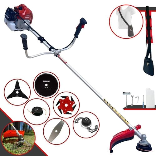 Com guidão ergonômico lateral, permite um alcance amplo e maior mobilidade, capaz de aumentar a produtividade diária. Possui motor 2 tempos á gasolina, de 43 Cilindradas; 1,7HP de potência que proporcionam maior performance e economia na operação. Seu conjunto de acessórios inclui kit de ferramentas, cinto de suporte almofadado, carretel de nylon e lâmina de corte 3 pontas.