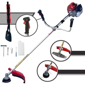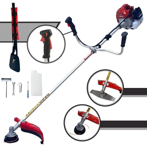 Com guidão ergonômico lateral, permite um alcance amplo e maior mobilidade, capaz de aumentar a produtividade diária. Possui motor 2 tempos á gasolina, de 52 Cilindradas; 2,5HP de potência que proporcionam maior performance e economia na operação. Seu conjunto de acessórios inclui kit de ferramentas, cinto de suporte almofadado, carretel de nylon e lâmina de corte 3 pontas.