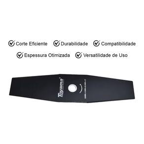 A Lâmina 2 Pontas 350×25,4×2,0 mm Toyama, em aço de alta qualidade, com diâmetro de 350 mm, furo central de 25,4 mm e espessura de 2,0 mm é indicada para corte de vegetação baixa e sem obstáculos.