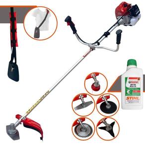 Com guidão ergonômico lateral, permite um alcance amplo e maior mobilidade, capaz de aumentar a produtividade diária. Possui motor 2 tempos á gasolina, de 62 Cilindradas; 3HP de potência que proporcionam maior performance e economia na operação. Seu conjunto de acessórios inclui kit de ferramentas, cinto de suporte almofadado, carretel de nylon e lâmina de corte 3 pontas.