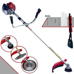 Com guidão ergonômico lateral, permite um alcance amplo e maior mobilidade, capaz de aumentar a produtividade diária. Possui motor 2 tempos á gasolina, de 43 Cilindradas; 1,7HP de potência que proporcionam maior performance e economia na operação. Seu conjunto de acessórios inclui kit de ferramentas, cinto de suporte almofadado, carretel de nylon e lâmina de corte 3 pontas.