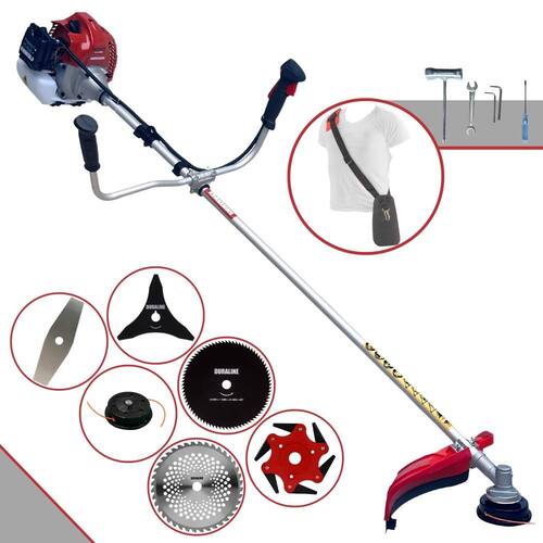 Com guidão ergonômico lateral, permite um alcance amplo e maior mobilidade, capaz de aumentar a produtividade diária. Possui motor 2 tempos á gasolina, de 52 Cilindradas; 2,5HP de potência que proporcionam maior performance e economia na operação. Seu conjunto de acessórios inclui kit de ferramentas, cinto de suporte almofadado, carretel de nylon e lâmina de corte 3 pontas.