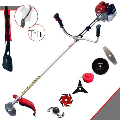 Com guidão ergonômico lateral, permite um alcance amplo e maior mobilidade, capaz de aumentar a produtividade diária. Possui motor 2 tempos á gasolina, de 62 Cilindradas; 3HP de potência que proporcionam maior performance e economia na operação. Seu conjunto de acessórios inclui kit de ferramentas, cinto de suporte almofadado, carretel de nylon e lâmina de corte 3 pontas.