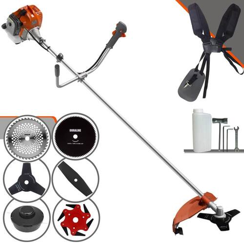 Com guidão ergonômico lateral, permite um alcance amplo e maior mobilidade, capaz de aumentar a produtividade diária. Possui motor 2 tempos á gasolina, de 42,7 Cilindradas (43cc) 9.000 de rotação 1,7HP de potência que proporcionam maior performance e economia na operação.Seu conjunto de acessórios inclui kit de ferramentas, cinto de suporte duplo almofadado, carretel de nylon e lâmina de corte 3 pontas.