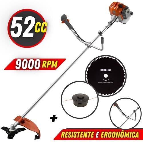 É uma roçadeira adpatável que pode se tornar multifuncional, podendo ser adaptado diversos modelos de acessórios, pois possui tubo de encaixe universal 28mm, e encaixe 25,4mm (1) para Lâminas e Facas, ampliando ainda a sua diversidade de cortes. Realizando o trabalho de forma ágil e confortável, com cinto duplo almofadado que acompanha o equipamento, proporcionando maior conforto, ergonomia e segurança ao operador. Com guidão ergonômico lateral, permite um alcance amplo e maior mobilidade, capaz de aumentar a produtividade diária. Possui motor 2 tempos á gasolina, de 51,6 Cilindradas (52cc) 9.000 de rotação 2,0 HP de potência que proporcionam maior performance e economia na operação.