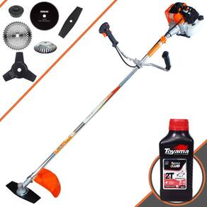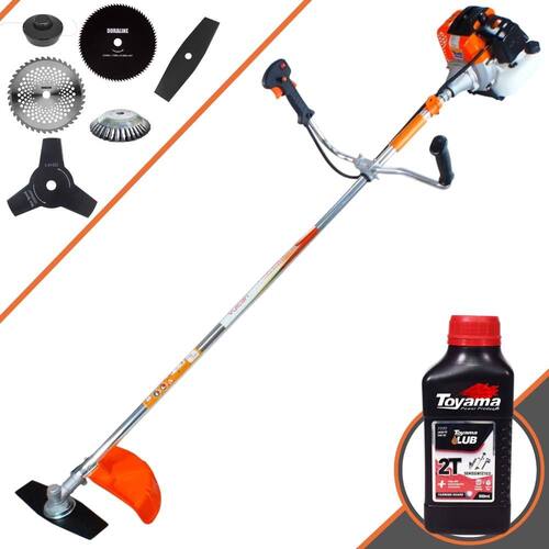 Roçadeira Lateral Vulcan VR430S À Gasolina 2 Tempos 43cc 1,7HP + Faca 3 Pontas 255mm + Faca 40 Dentes 255mm + Faca 80 Dentes 255mm + Escova Rotativa 200mm 38 Cerdas + Óleo TOYAMA LUB FG50 500ml 2T