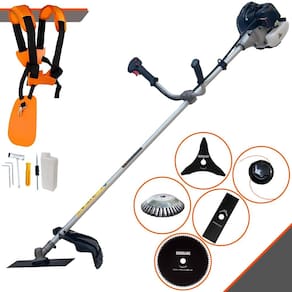 Roçadeira Lateral ANMAX CG430B À Gasolina 2 Tempos 43cc 1,7HP + Faca 3 Pontas 255mm + Faca 80 Dentes 255mm + Escova Rotativa 38 Cerdas