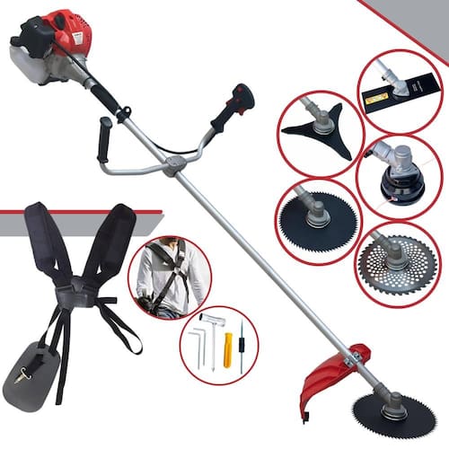 Roçadeira Lateral ANMAX CG520P-TB Plus À Gasolina 2 Tempos 52cc 2,2HP + Faca 3 Pontas 255m + Faca 40 Dentes 255mm + Faca 80 Dentes 255mm