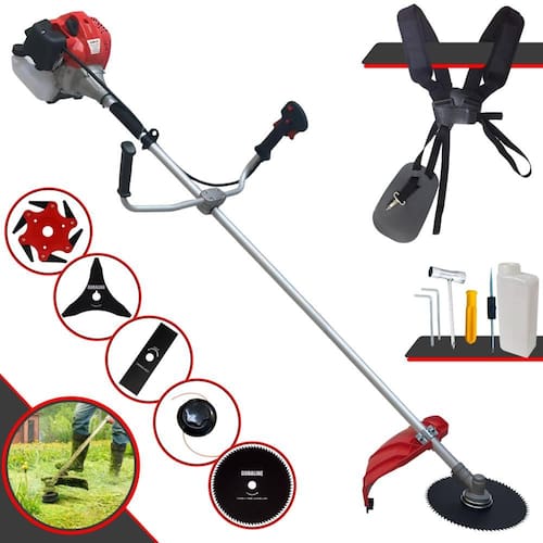Roçadeira Lateral ANMAX CG520P-TB Plus À Gasolina 2 Tempos 52cc 2,2HP + Faca 3 Pontas 255m + Faca 80 Dentes 255mm + Faca 6 Pontas 250mm