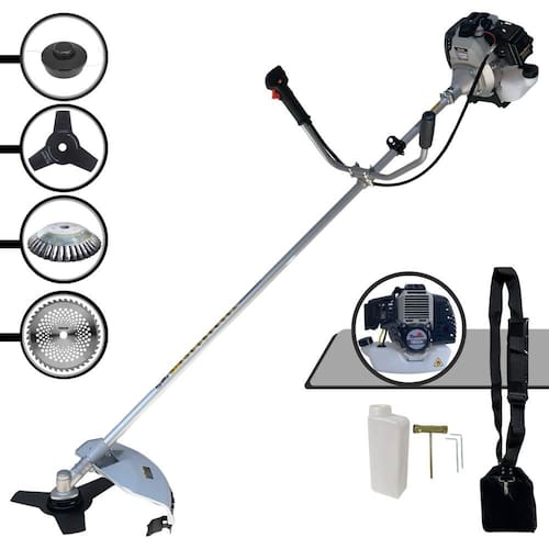 Com guidão ergonômico lateral, permite um alcance amplo e maior mobilidade, capaz de aumentar a produtividade diária. Possui motor 2 tempos á gasolina, de 42,7 Cilindradas, 12.000 de rotação 1,7HP de potência que proporcionam maior performance e economia na operação.Seu conjunto de acessórios inclui kit de ferramentas, cinto de suporte almofadado, carretel de nylon e lâmina de corte 3 pontas.
