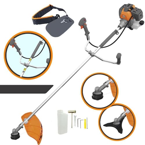 Com guidão ergonômico lateral, permite um alcance amplo e maior mobilidade, capaz de aumentar a produtividade diária. Possui motor 2 tempos á gasolina, de 42,7 Cilindradas (43cc) de rotação 1,7HP de potência que proporcionam maior performance e economia na operação. Seu conjunto de acessórios inclui kit de ferramentas, cinto de sustentação, carretel de nylon e lâmina de corte 3 pontas.