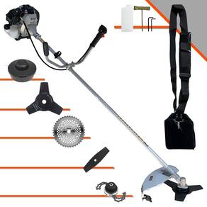 Com guidão ergonômico lateral, permite um alcance amplo e maior mobilidade, capaz de aumentar a produtividade diária. Possui motor 2 tempos á gasolina, de 42,7 Cilindradas, 12.000 de rotação 1,7HP de potência que proporcionam maior performance e economia na operação.Seu conjunto de acessórios inclui kit de ferramentas, cinto de suporte almofadado, carretel de nylon e lâmina de corte 3 pontas.