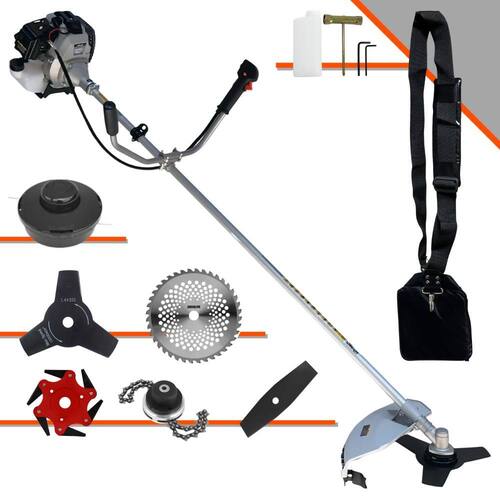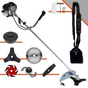 Com guidão ergonômico lateral, permite um alcance amplo e maior mobilidade, capaz de aumentar a produtividade diária. Possui motor 2 tempos á gasolina, de 42,7 Cilindradas, 12.000 de rotação 1,7HP de potência que proporcionam maior performance e economia na operação. Seu conjunto de acessórios inclui kit de ferramentas, cinto de suporte almofadado, carretel de nylon e lâmina de corte 3 pontas.